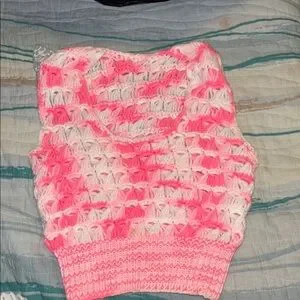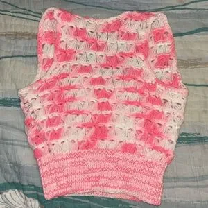 VINTAGE Stylish and vibrant, this pink and white crochet top is perfect for any casual outing. Its unique design adds a touch of elegance to your wardrobe.