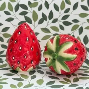 vintage, ceramic, hand-painted, strawberry, salt, pepper, summer