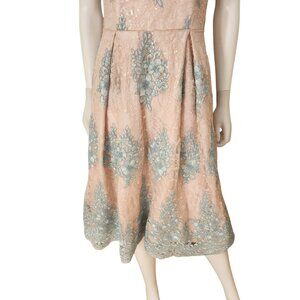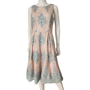 Adrianna Papell Women's Pink Embroidered Midi Fit & Flare Dress
