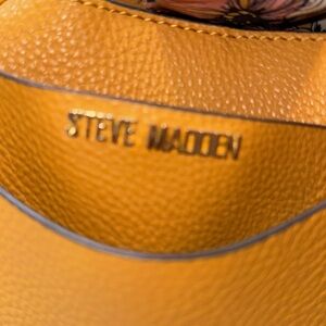 The center zipper pouch is completely removable and has a wristlet type strap attached. Has a suede like look and feel on the inside of purse. Pouch is all over monogram print on the inside. Like new condition and is without the long detachable strap.