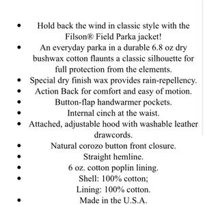 Filson field parka jacket