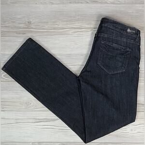 A skinny leg adds an on-trend style to this jeans with lightly faded details. Slimming dark wash and comfort stretch completes this premium denim style. All measurements are approximate and are taken lying flat and unstretched