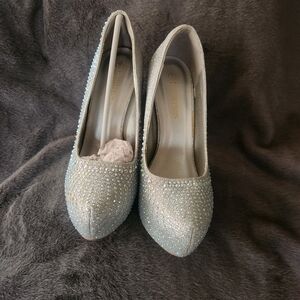 size 9 silver glitter heel great for prom. use for more details look the pictures