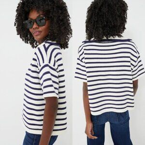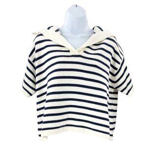Tuckernuck NEW Ivory and Navy Stripe Claire Nautical Polo Crop Sweater Size L