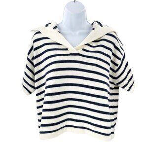 Tuckernuck NEW Ivory and Navy Stripe Claire Collared Polo Crop Sweater Size L