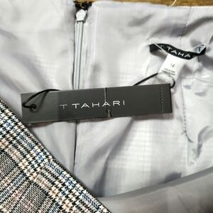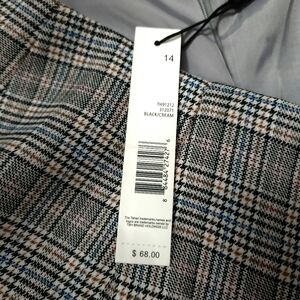 NWT $68 T TAHARI PLAID BLACK/CREAM PENCIL SKIRT SIZE 14