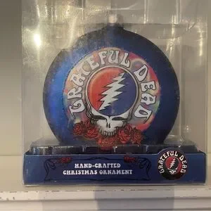 Ornament is a wonderful addition to any Rock & Roll collection! This ornament features a deep blue disc with the Grateful Dead™ Skull and Roses on the front and on the back is "Good Ol' Grateful Dead". Comes in a clear plastic box. This is a perfect gift for any Rock & Roll enthusiast. Size is 4” in diameter. Has never be out of the box~•