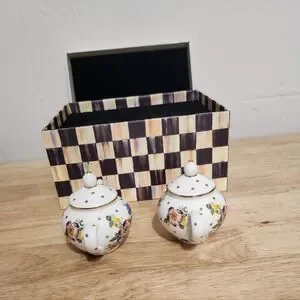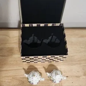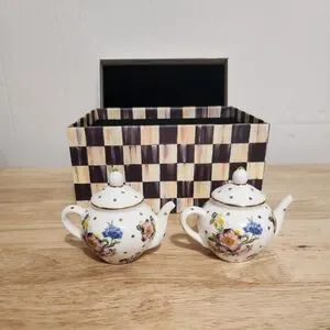 Mackenzie-Childs White Flower Market Teapot Salt & Pepper Set