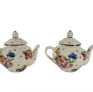 Ceramic White Flower Market Teapot Salt & Pepper Set features a pair of White Flower Market teapots that hold salt and pepper. Presented in a beautiful gift box, it makes an ideal gift for the salt and pepper shaker collector.