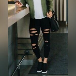 Black slash hi-rise legging
