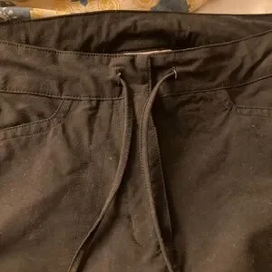 Drawstring to tighten, side pocket on the bottom of the leg, slits on both legs for ease of movement