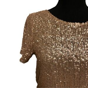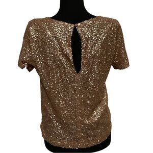 Shimmery, glamorous party top. Gold sequins. Sure to catch everyone’s eye. Size medium. Comfortable and fun to wear.