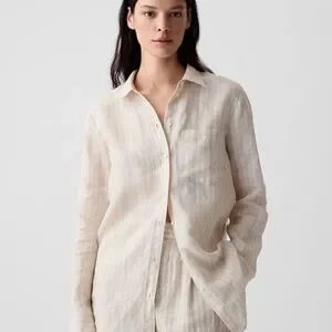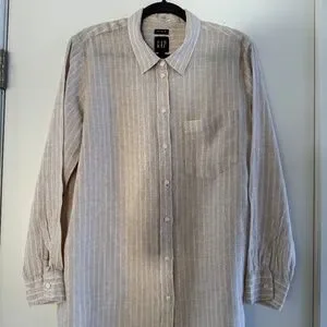 GAP - 100% Linen - Boyfriend Shirt - Neutral Stripe - M