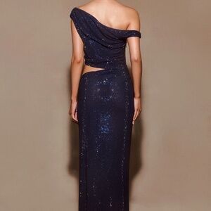 Mehski Diamante One Shoulder Maxi Dress - Navy