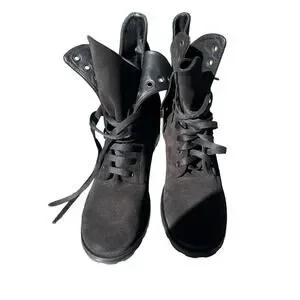 275 Central BLK Suede Leather Combat Lace Up Boots