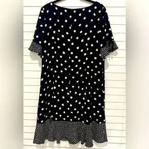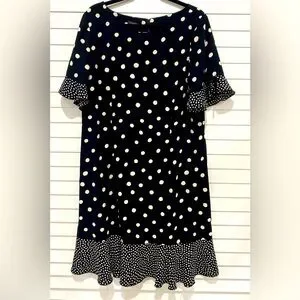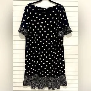 Talbots Black White Polka Dot Ruffled Plus Size Short Sleeved Midi Dress 16