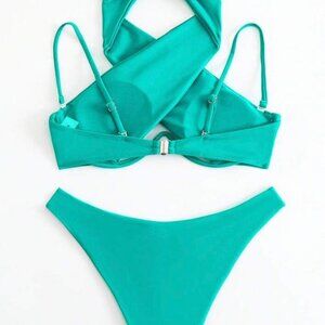 - Elegant Design: Cross halter underwire top for a stylish, supportive fit, complemented by sleek bikini bottoms.