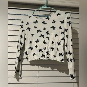 Forever 21 Butterfly Cropped Long Sleeve Shirt