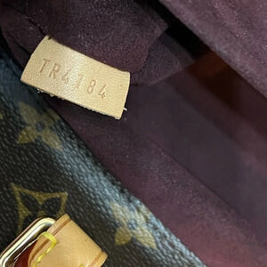 Exterior is coated monogram canvas, top handles are leather and gold hardware.