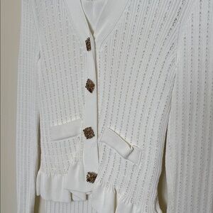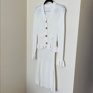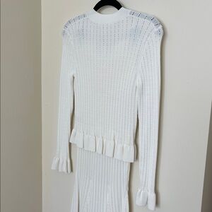 White Jeweled Ruffled Knit Top and Flared Skirt Set