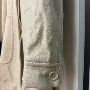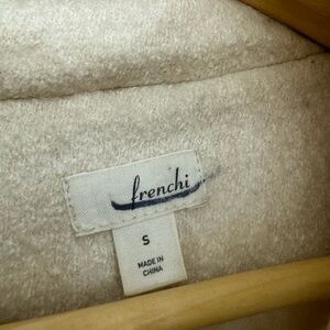 Frenchi wool coat with hood. This is size small and please see picture for the minor color mark and minor interior scratch. Size small