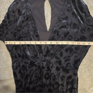 Lush blue velvet romper long bell sleeve medium v neck burnout