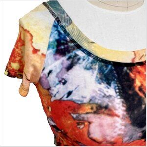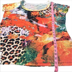 This Alberto Makali tee shirt features a fierce eye-catching design with an orange leopard and volcanic lava print, adding a bold and vibrant touch to your outfit. The shirt has a scoop neckline and short sleeves, making it a comfortable and stylish option for casual or travel occasions. Made from a blend of polyester and spandex in a knit fabric, this lightweight and stretchy tee shirt is easy to care for with hand washing. Perfect for the warmer seasons like summer and spring, this regular fit tee is a versatile addition to any wardrobe.