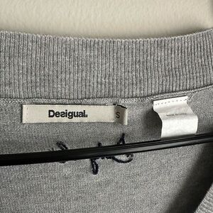 Desigual Gray Pullover Sweater Blue Floral Sequins size Small