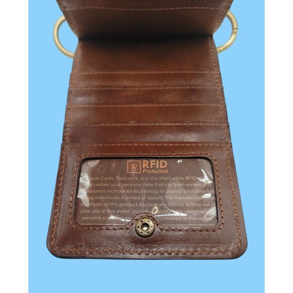 This Patricia Nash bag combines style and functionality, featuring an intricate map print. Its leather construction provides durability, and the crossbody design ensures convenience for carrying essentials.