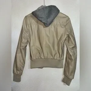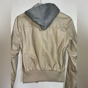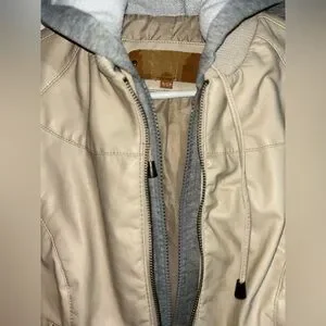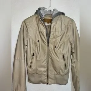 cream/beige faux leather jacket with grey hood S