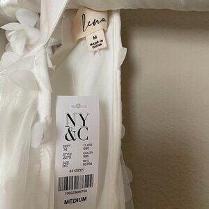 NEW! White Floral dress New York and company featured brand, Lena, 3D flowers.