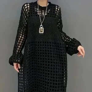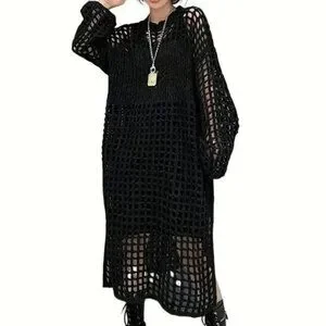 Open Knit Hollow Long Sweater Dress