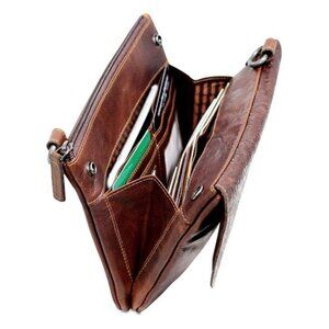 NWT Jack Georges Voyager Brown Floral Genuine Leather Wallet Purse Boho