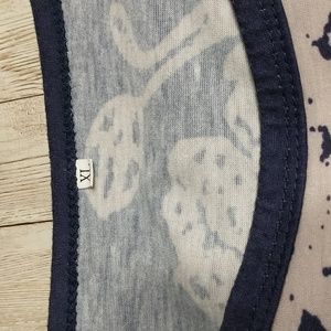 Cotton midi dress in navy and orange with floral print. Feels like T-shirt fabric.