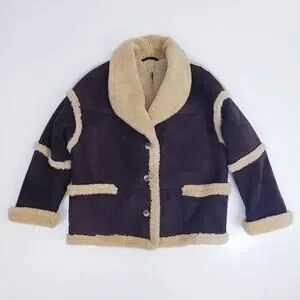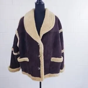 Vintage 80s Vakko Shearling Suede Coat Brown Hipster Coat Jacket Made In Romania