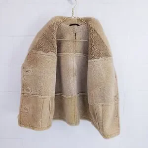 Vintage 1980s Vakko Patchwork Shearling Coat. Heavy and warm. Rich Dark Brown. 3 buttons; 2 outer pockets.