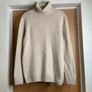Tan Wool Blend Pull On Turtleneck Sweater,With Long Sleeves,Size M
