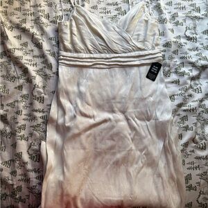Express White Ruched Slip Elegant Dress with Spaghetti Strap