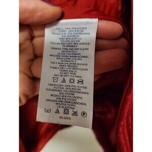 This Lands' End puffer vest is a stylish addition to any wardrobe. With a vibrant red color and gold zippers, it's perfect for making a statement. The vest is made of polyester with a nylon lining, and it's insulated with down to keep you warm in chilly weather.