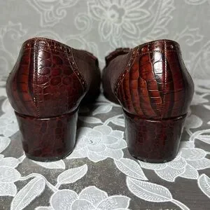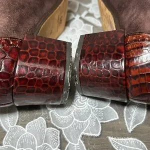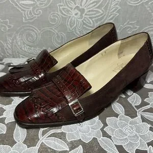 Joan & David Brown Loafer Heel Suede Embossed Buckle Fringe Vintage Italy 10