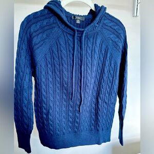 A navy J. Crew cable knit sweater hoodie for casual wear. NWOT in perfect condition from a smoke-free home.