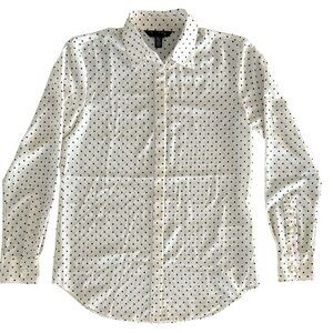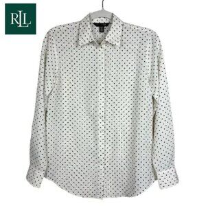Lauren Ralph Lauren Button Up Blouse Ivory with Navy Polka Dots Classic Size XS