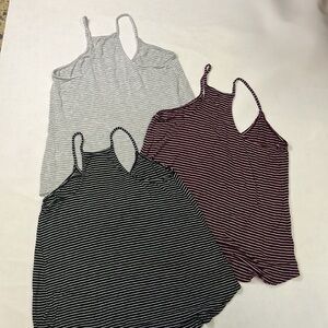 Soft rayon/spandex knit racerback style tank. One of each color: black, wine, light grey.