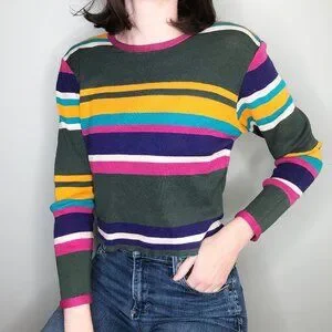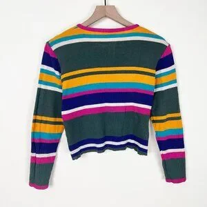 Colors: Hot pink magenta, forest green, cobalt, light sky blue, yellow, & white striped knit