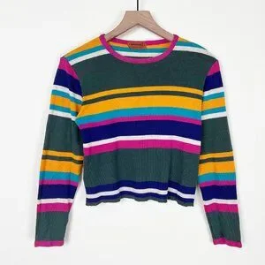 Vintage Missoni Knit Sweater Cropped Distressed Long Sleeve Blouse Top Shirt