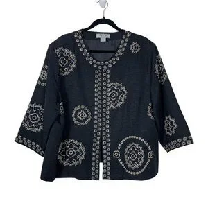 Birch Hill Woman Embroidered Black Jacket Silk Blend Blazer Jacket 2X