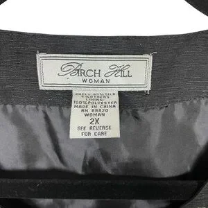 This elegant Birch Hill Woman jacket features intricate embroidery on a sophisticated black fabric, offering both style and comfort. Designed for the modern woman, its polyester and silk blend ensures durability and a luxurious feel. With a flattering 2X fit, this jacket adds a touch of elegance to any wardrobe.