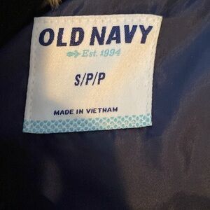 Old Navy coat w fake fur (it is not removable), zips, buttons