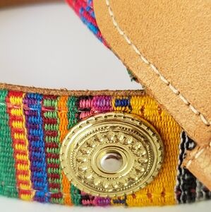 Beautiful and colorful genuine leather belt.Intricate stitching with silver & gold details. Crafted in Guatemala. Measurements: <XL> 41 1/2" x 1 3/4" with 2" Buckle
