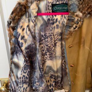 Overland: Quality workmanship since 1973! Excellent condition! This is a supremely soft leather, finely detailed stitching with fur collar, cuffs and hem and button placket. Lined with the silkiest fun fabric, slash pockets. Made in Turkey, Size Large. Measurements: Pit to pit, 19"; Length from shoulder to hem, 24"; sleeve length 25"